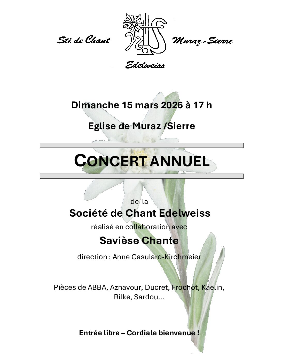 Concert annuel de l’Edelweiss de Muraz en collaboration avec Savièse Chante.